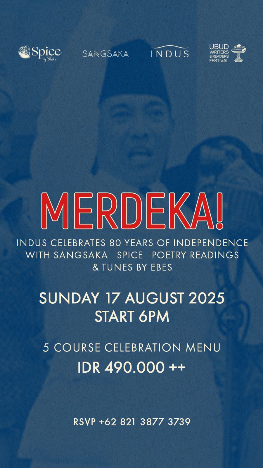On August 17, Indus teams up with the Ubud Writers & Readers Festival, welcoming Kieran Morland from Sangsaka and mixologist Bili Wirawan from Spice by Blake. They’ll honor Indonesia’s 80th Independence Day with an unforgettable celebration titled “Merdeka: The Spirit of Freedom.”